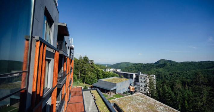 Descopera cel mai nou hotel din Balvanyos Resort - Peakture Hotel. Incadrat perfect in mediul inconjurator si stilul architectural al Resortului - cladirea noua de 4 etaje cuprinde 50 de camere elegante create cu stil si rafinament, restaurantul Bundaberry cu specialitati de pizza italiana, roof top barul Champagne and more, un centru de conferinte si nu in ultimul rand un Spa nou dedicat familiilor cu copii.