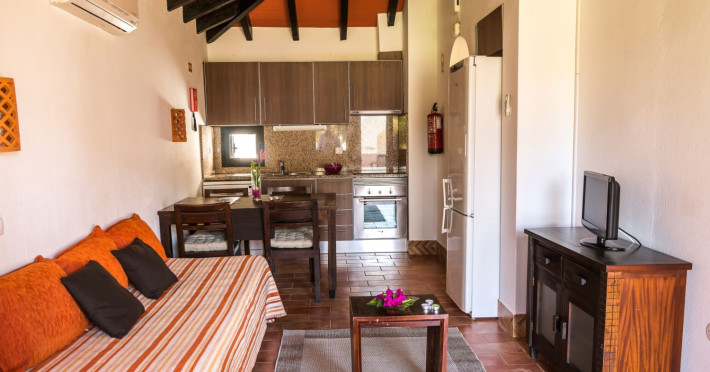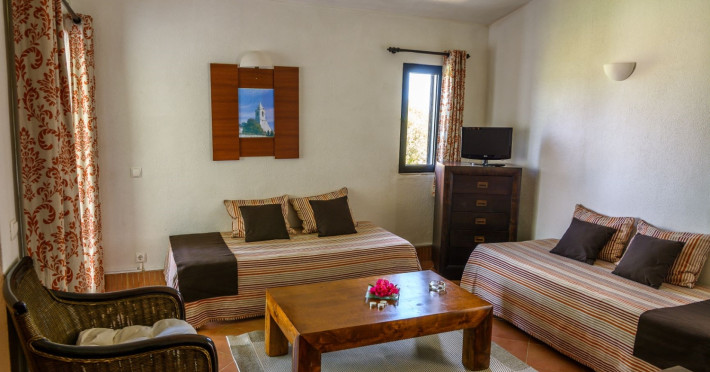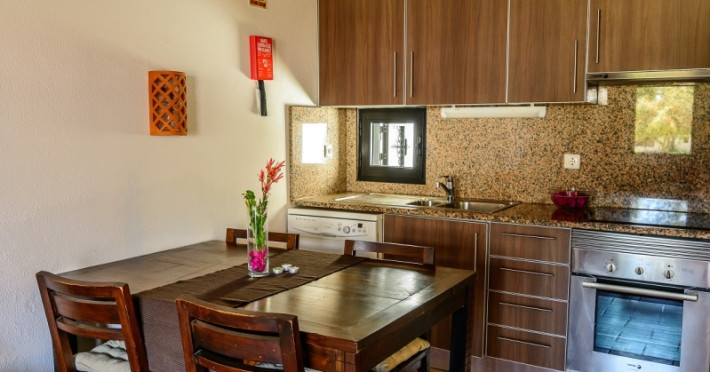 The Pedras d'El Rei hotel is situated in a quiet and relaxed area, with accommodation built in rustic and regional style, which makes it cozy and pleasant. There are studio apartments, with capacity up to 2 adults; 1 bedroom apartments for 4 persons; superior 1 bedroom apartments, with capacity up to 5 persons; 2 bedroom (duplex) apartments for 7 persons; and villas with capacity for 6 and 8 persons. All rooms/villas are properly equipped with kitchen or kitchenette, TV , Internet access (extra charge), bathroom (shower or bathtube) and balcony or terrace.