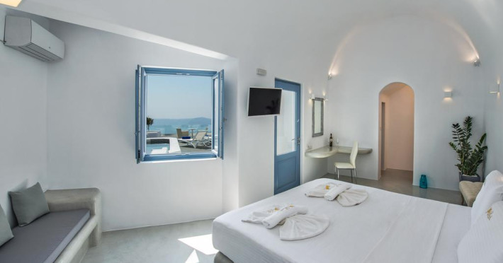 Cel mai apropiat aeroport este Aeroportul Internaţional din Santorini, situat la o distanță de 7 km. La cerere proprietatea organizează transfer la/de la aeroport contra cost.