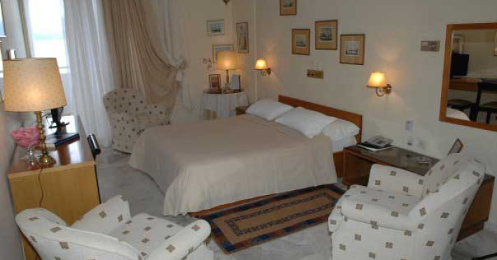 Camerele hotelului Pelagos sunt mobilate clasic si au balcoane cu vedere la mare sau la gradina. Acestea sunt dotate cu aer conditionat, TV satelit, frigider, baie cu cada si articole de toaleta.