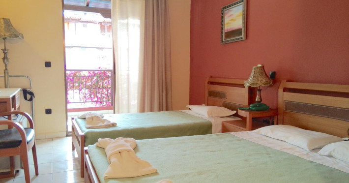 Unitatea de cazare este situata in statiunea Pefkohori, care se afla in partea sudica a bratului Kassandra, la 150 m de plaja publica cu nisip.