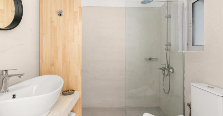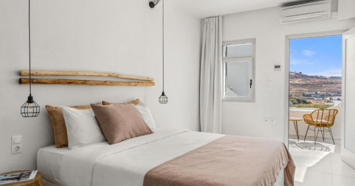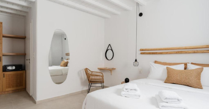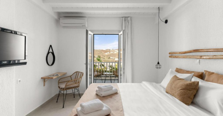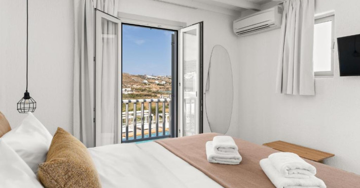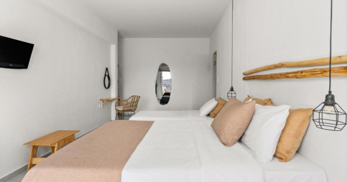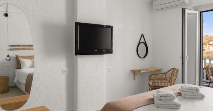 Camerele cu aer condiționat au balcon privat și sunt dotate cu TV, uscător de păr, frigider și baie privată. Unele camere oferă vedere la Marea Egee.