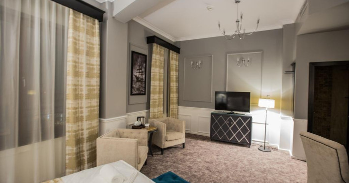 KING ROOM - Aceste camere au un design elegant, cu decoruri si finisaje luxoase, in care vei redescoperi confortul si relaxarea dupa o zi petrecuta in ritmul agitat al orasului sau aproape de valurile marii. De asemenea, acest tip de camere devin camere comunicante insumand astfel un spatiu generos de 60mp. Camerele sunt echipate cu aer conditionat centralizat, internet wi-fi, Smart TV, minibar,baie private, seif, uscator de par, papuci de interior, halat de baie, ferestre automate cu rulouri opace 100%. In aceste camere se pot caza maxim 2 adulti. Accesul la aceste camere se face pe scari fiind localizate la mansarda hotelului. Suprafata totala a camerei este de 24mp.