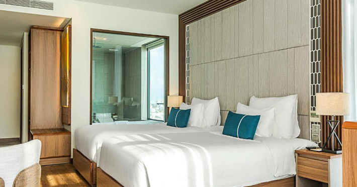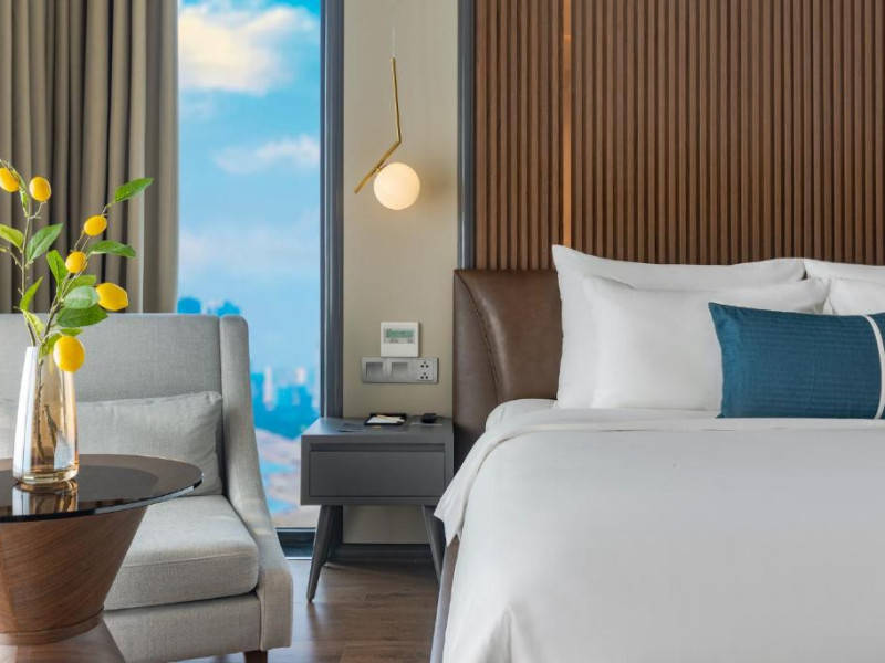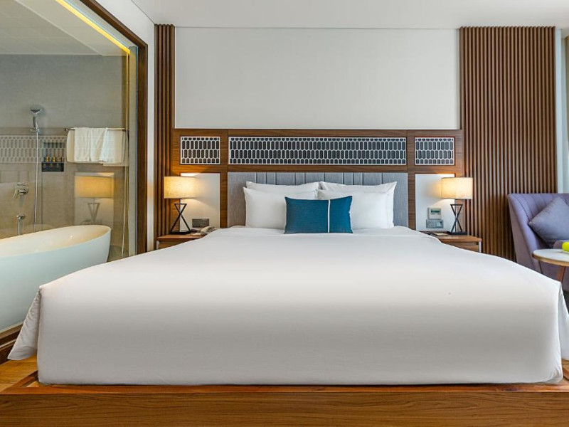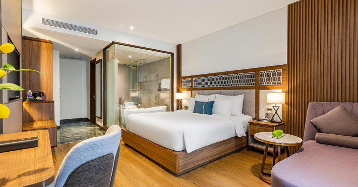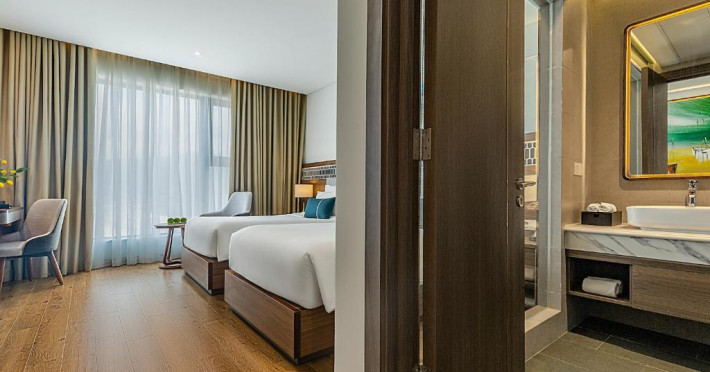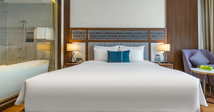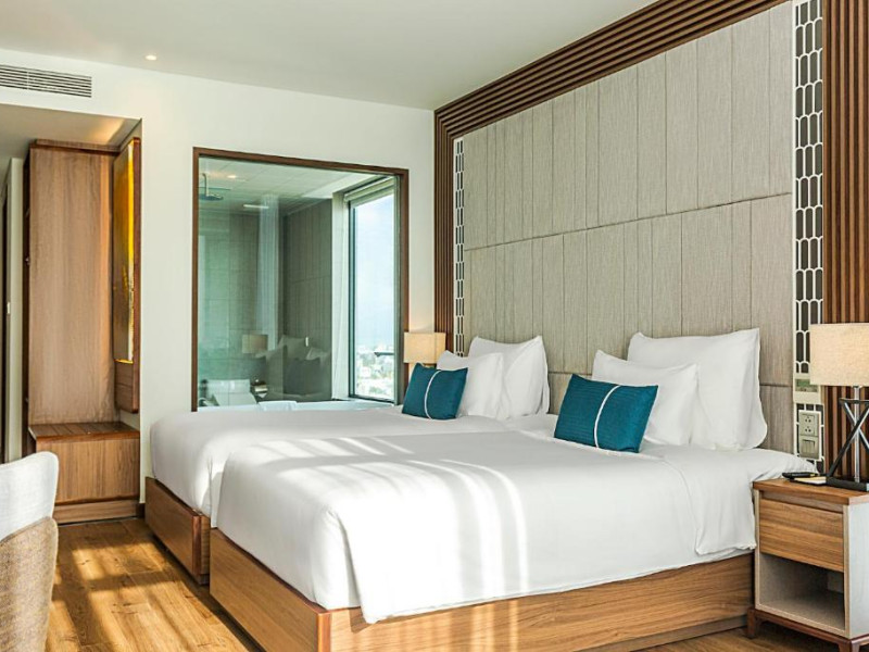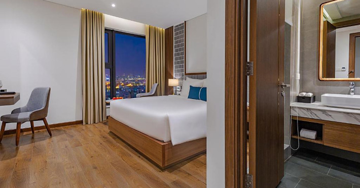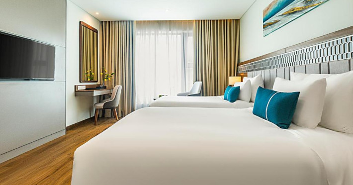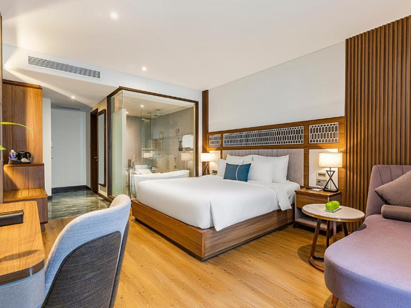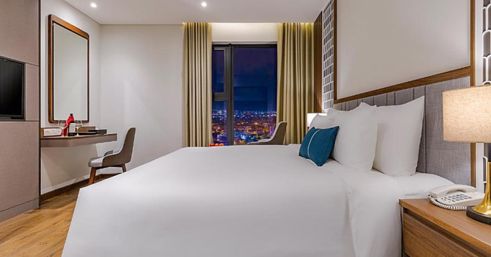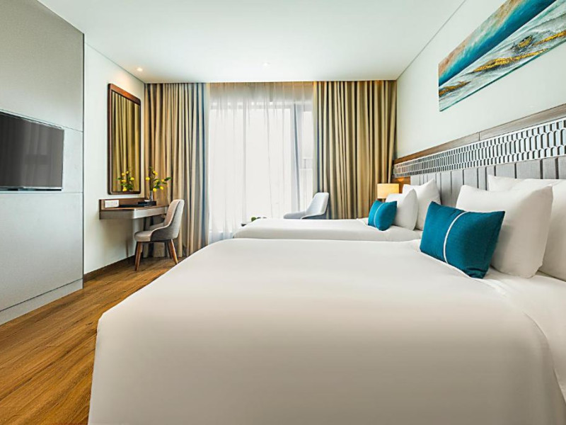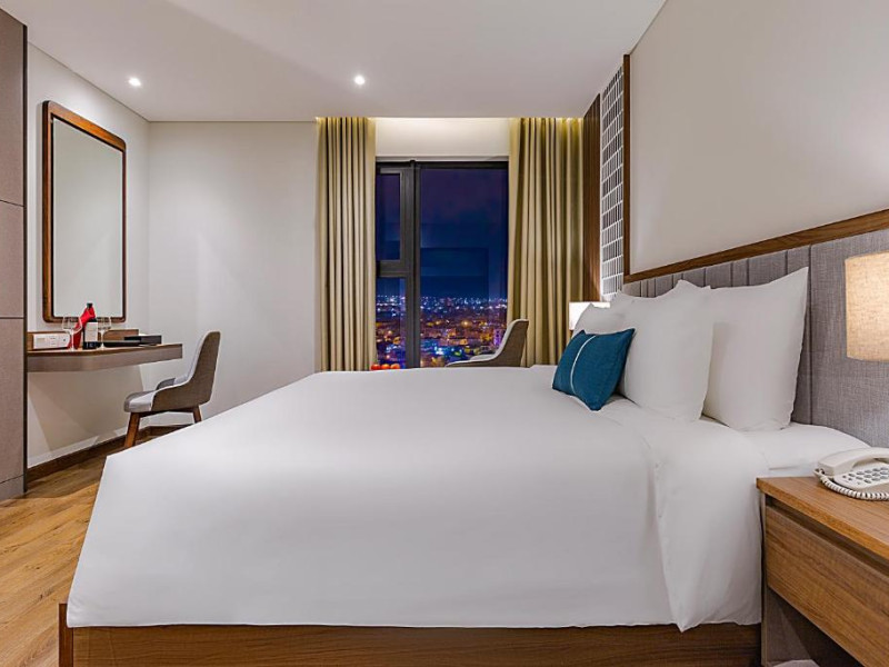 Acest hotel pune la dispoziție camere cu aer condiționat, birou, ibric electric, un frigider, un minibar, cutie de valori, televizor cu ecran plat și o baie proprie cu bideu. Baia proprie oferă un duș, articole de toaletă gratuite și un uscător de păr. La Peninsula Hotel Danang, camerele sunt dotate cu lenjerie de pat și prosoape. La Peninsula Hotel Danang este disponibil in fiecare dimineață un mic dejun tip bufet sau continental. Acest hotel pune la dispoziție o terasă.