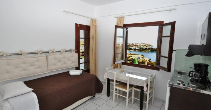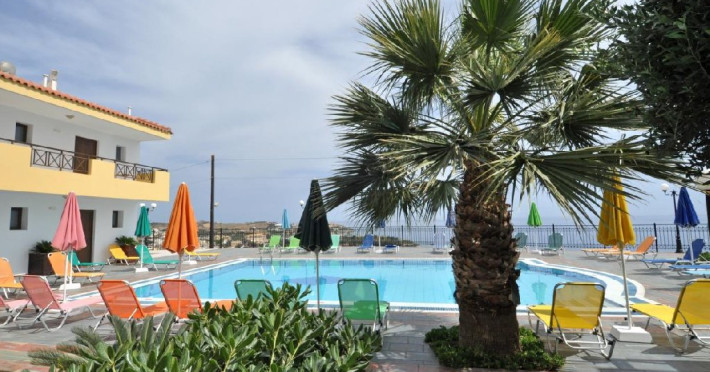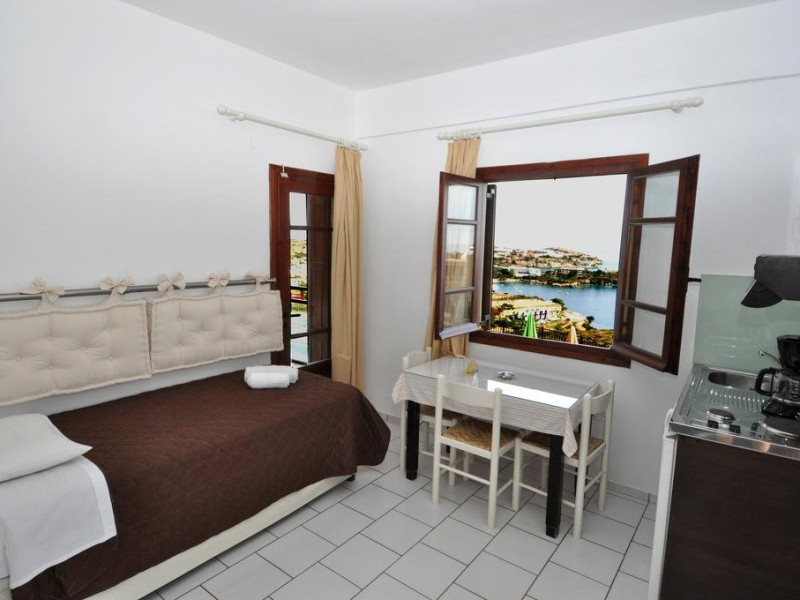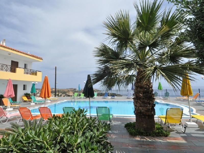 Descriere: Pennystella Apartments este un complex administrat in familie, situat intr-o zona linistita si cu privelisti panoramice asupra golfului si satului Agia Pelagia. Unitatea ofera studiouri si apartamente simple, dar complet utilate, ideale pentru o vacanta relaxanta in Creta. Atmosfera prietenoasa, piscina exterioara cu terasa insorita si taverna traditionala contribuie la un sejur placut si confortabil.Localizare: Pennystella Apartments se afla pe un versant, la marginea satului Agia Pelagia, la aproximativ 800 de metri de plaja si la 23 de kilometri de Aeroportul International Nikos Kazantzakis din Heraklion. Zona este linistita, cu acces rapid catre centrul statiunii, unde se gasesc taverne, magazine si diverse facilitati locale.
