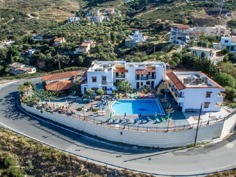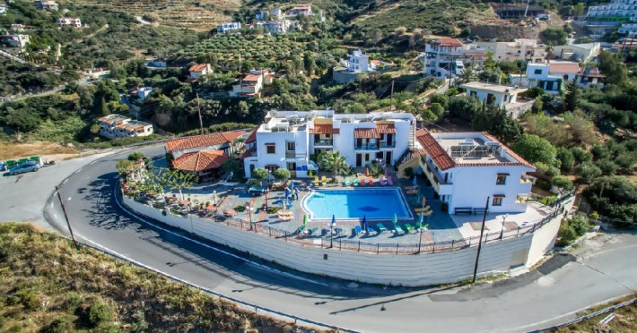 Facilitati hotel: Complexul are Wi-Fi gratuit in zonele publice, o piscina exterioara si o terasa cu sezlonguri si umbrele gratuite. Oaspetii au acces la o taverna ca la carte cu specific grecesc, la un lounge unde este servit zilnic micul dejun continental si la un bar cu terasa. Hotelul dispune de servicii medicale la cerere, precum si de facilitati de prim ajutor. Copiii beneficiaza de patut sau scaun inalt la cerere, fara costuri suplimentare, iar animalele de companie sunt acceptate tot la cerere.