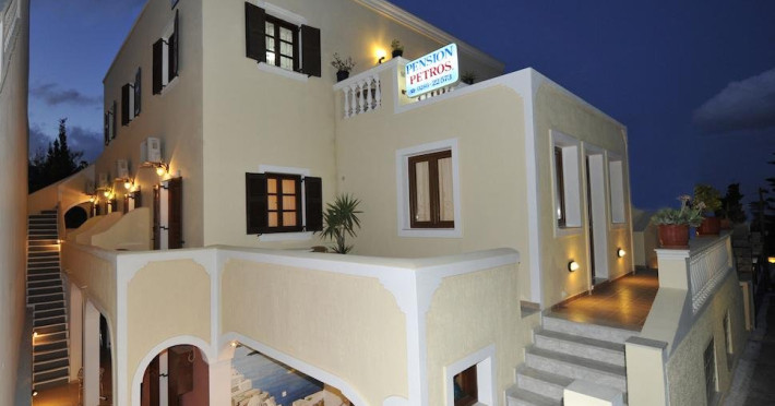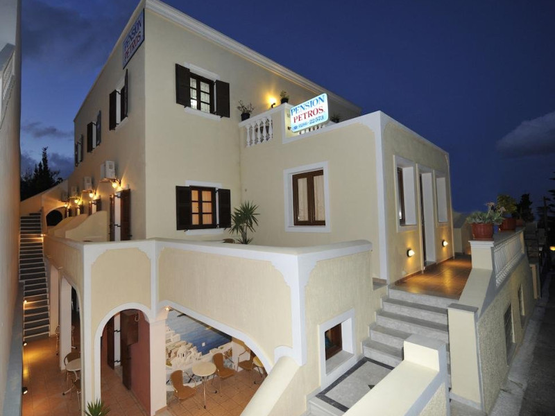 Pensiunea Petros este situata la doar cativa metri de centrul capitalei Fira, in apropiere existand numeroase magazine, taverne, baruri si cafenele. Hotelul este ideal situat in apropierea statiei de autobuz local si de taxi si ofera acces la promenada cu vedere la superba Caldera.