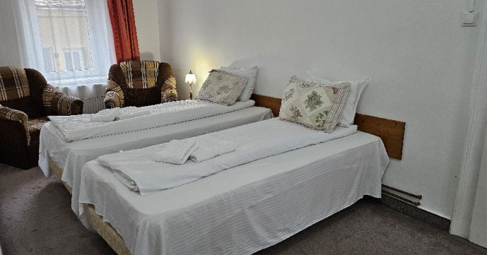 Camerele dispun de baie proprie, TV cablu. Sunt situate la parter sau la etaj, au vedere la curtea interioara sau la strada.