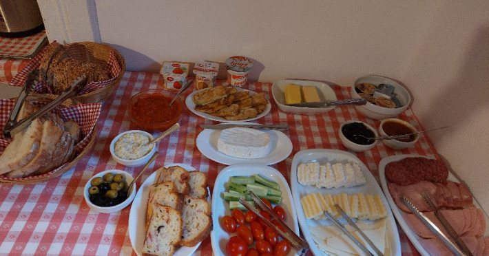 Oaspetii pot savura micul dejun in sala de mese intima, cu produse facute in casa.