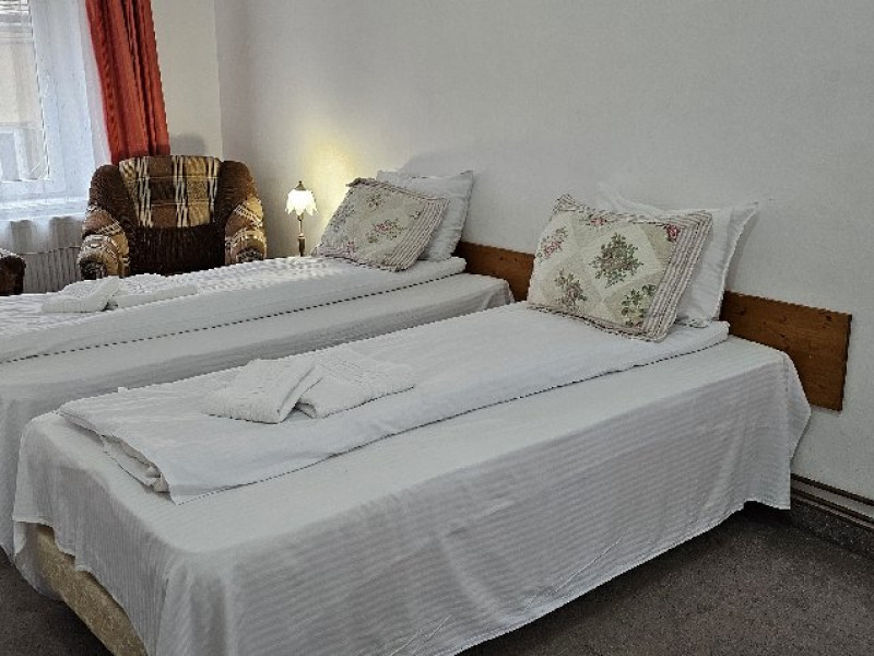 Camerele dispun de baie proprie, TV cablu. Sunt situate la parter sau la etaj, au vedere la curtea interioara sau la strada.