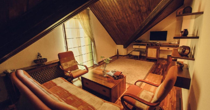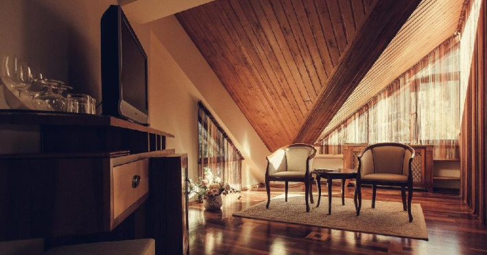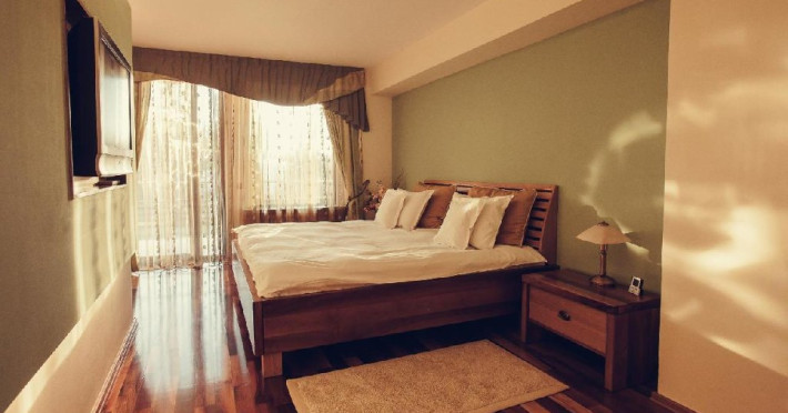 Suita deluxe este formata din dormitor cu pat matrimonial si living cu canapea extensibila. De asemenea Suitele deluxe dispun de cada cu hidromasaj.