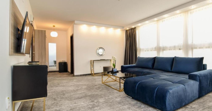 2 Apartamente: amplasate la etajul 1, avand o suprafata de 70 mp, compus din living cu canapea extensibila dotata cu lenjerie si dormitor cu pat matrimonial 1.80/2 m, baie cu cabina de dus si jacuzzi, fierbator de apa.