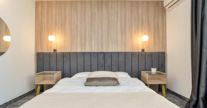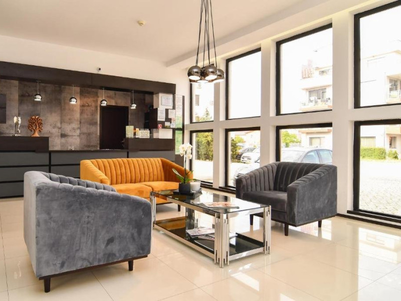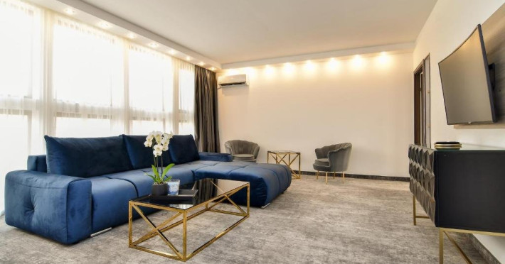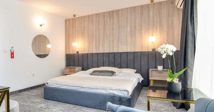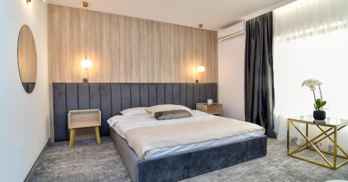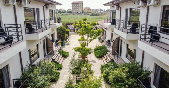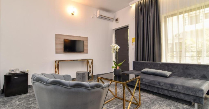 2 Apartamente: amplasate la etajul 1, avand o suprafata de 70 mp, compus din living cu canapea extensibila dotata cu lenjerie si dormitor cu pat matrimonial 1.80/2 m, baie cu cabina de dus si jacuzzi, fierbator de apa.