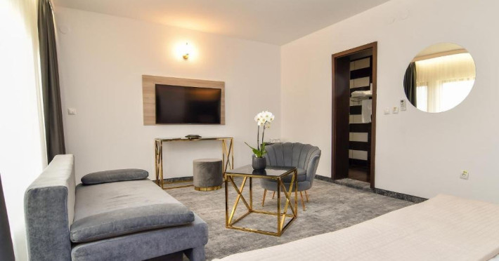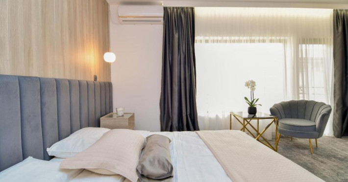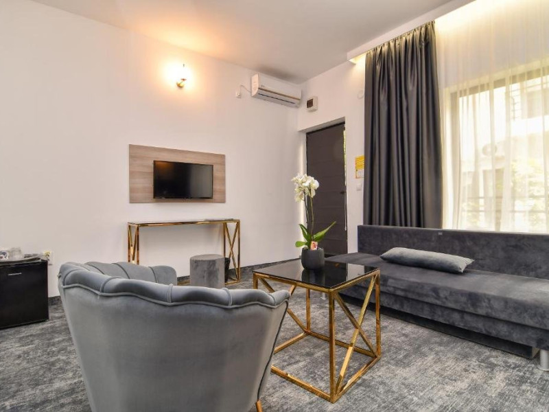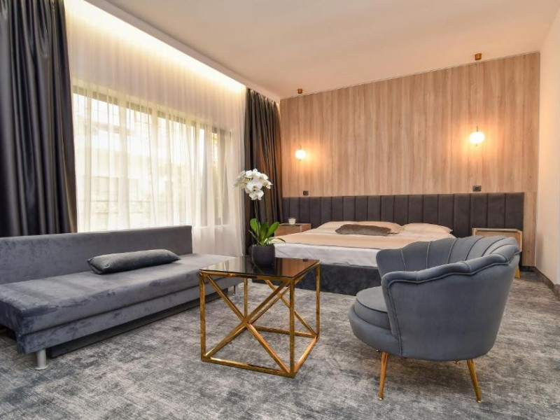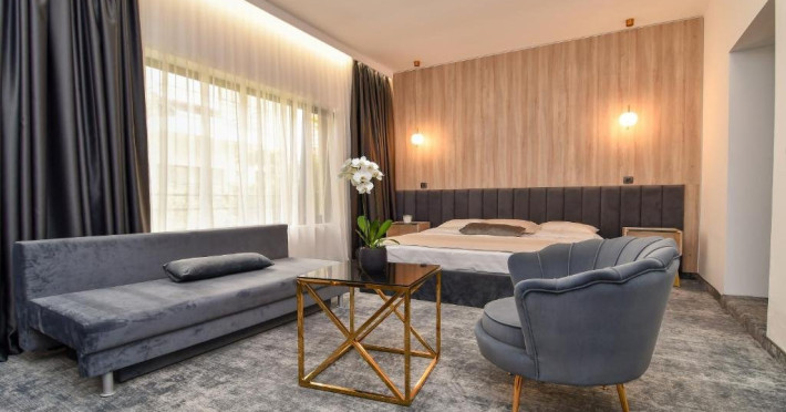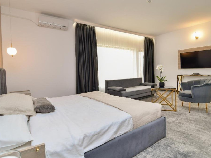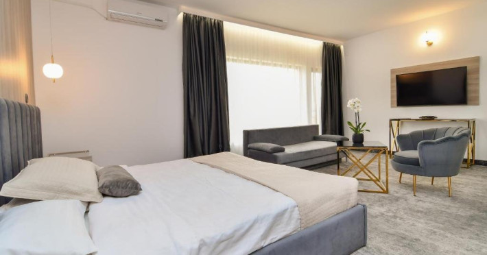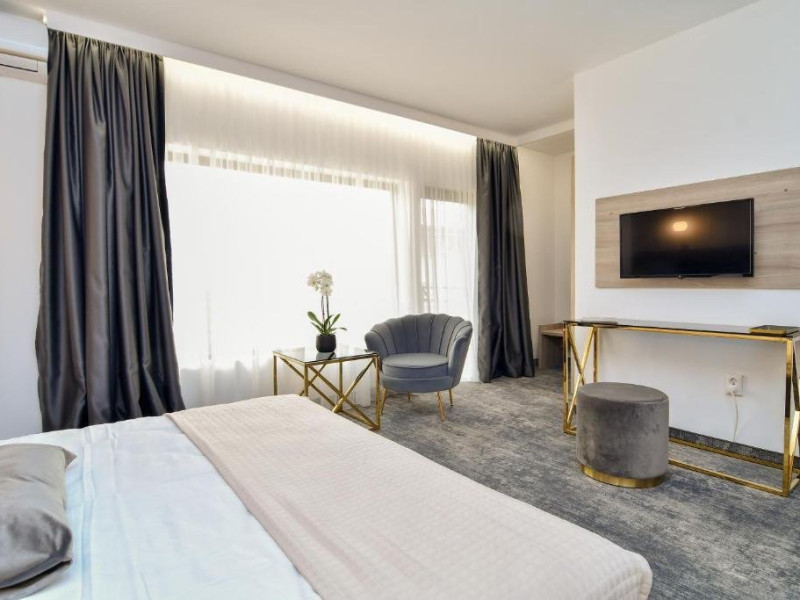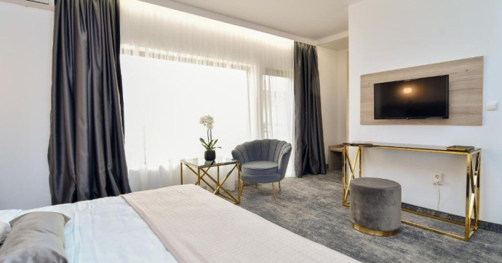 Dotari camere: TV, aer conditionat, minibar, baie cu dus, balcon, uscator de par, papuci de casa, internet wi-fi, mocheta, patut bebe (gratuit, la cerere), fier de calcat+ masa (la cerere).
