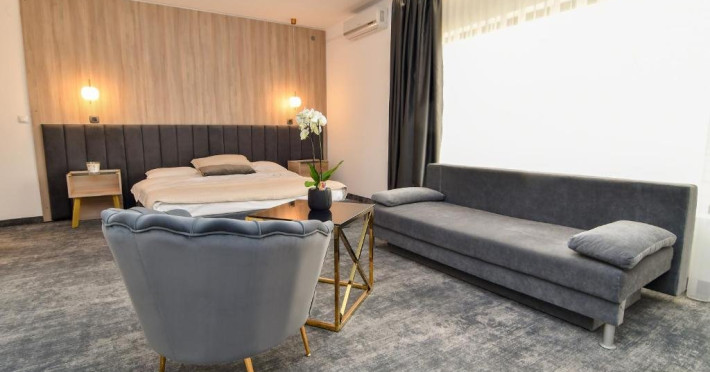8 Duble FAMILY: amplasate la parter si etajul 1, avand o suprafata de 35 mp, pat matrimonial 1.80/2 m, canapea dotata cu lenjerie care poate fi utilizata ca pat suplimentar.