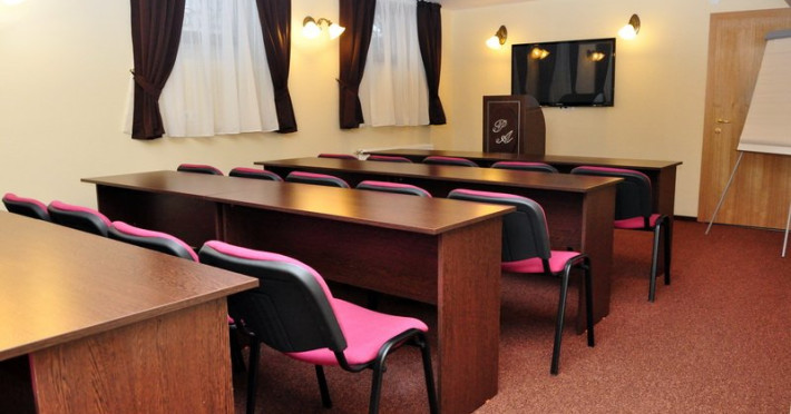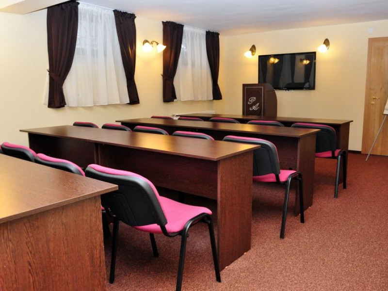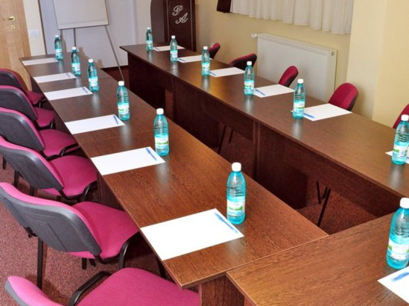 - 2 sali de conferinte cu capacitati de 40 si respectiv 28 locuri, dotate cu videoproiector, internet wireless, lumina naturala si artificiala, flichart, whiteboard, CATV