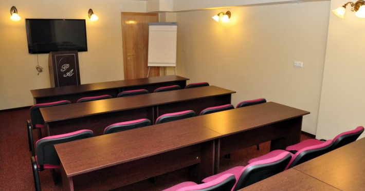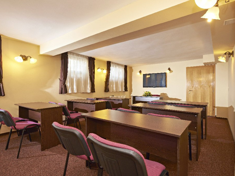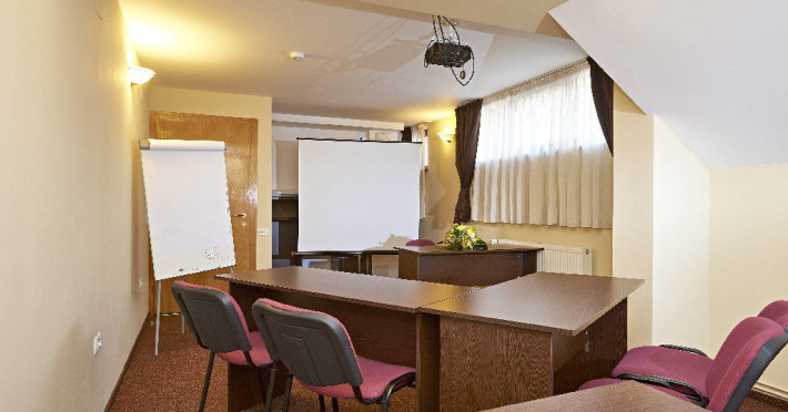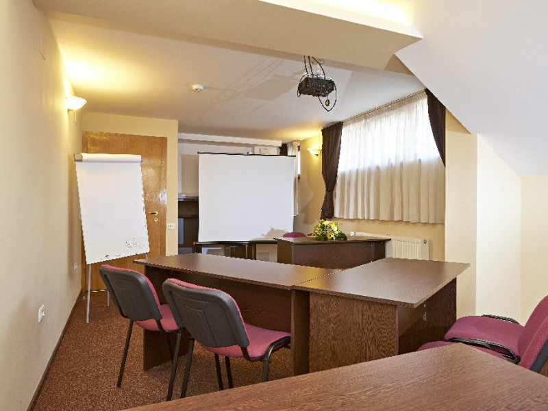 - 2 sali de conferinte cu capacitati de 40 si respectiv 28 locuri, dotate cu videoproiector, internet wireless, lumina naturala si artificiala, flichart, whiteboard, CATV