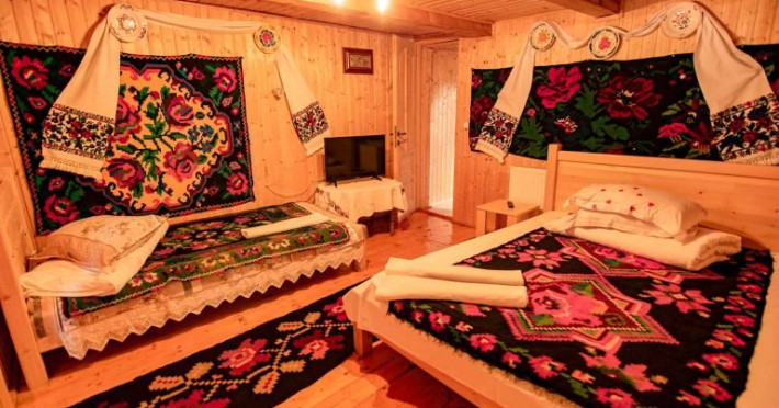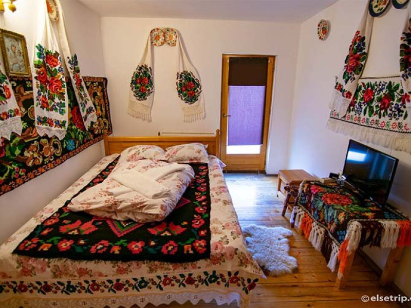 Oaspetii care poposesc la pensiune admira cu interes podoabele vestimentare si uneltele folosite odinioara in gospodariile taranesti.