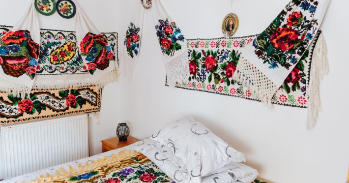 Oaspetii care poposesc la pensiune admira cu interes podoabele vestimentare si uneltele folosite odinioara in gospodariile taranesti.