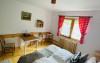 Mancarea se prepara in fiecare zi, din produse oferite de fermele din zona, procesarea si industrializarea fiind minime. Avem trei mese pe zi, cu meniuri prestabilite, care contin mancaruri gustoase, din gastronomia traditionala. In pretul rezervarii este inclus micul dejun. Pranzul si cina se platesc separat.