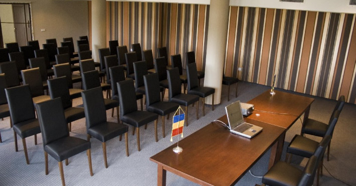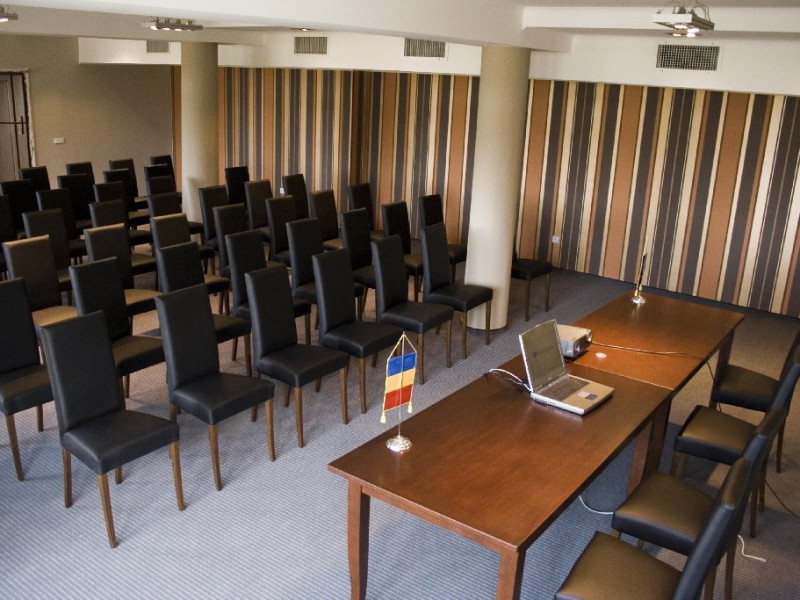 FACILITATI EVENIMENTE: Anthimos**** ofera un etaj executiv, cu un centru de afaceri, format din 2 sali de conferinta si un foyer: - Sala Felix - suprafata 84 m, configurabila (banchet, sala de clasa, teatru, receptii, consiliu, forma U), capacitatea 70 locuri, Sala Belvedere - suprafata 35 m, configurabila (banchet, sala de clasa, teatru, receptii, consiliu, forma U), capacitatea 30 locuri - Foyer - suprafata 58 mp