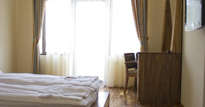 DESCRIERE CAMERE: Camerele elegante, dotate cu mobila din lemn masiv de nuc,TV LCD cu programe prin cablu / satelit, minibar, seif, conectare internet, climatizare contribuie la crearea unei atmosfere relaxante. Camerele de baie, spatioase si echipate cu cabina de dus, uscator de par, halate de baie si papuci stau la dispoziia oaspeilor. Acces cartela.