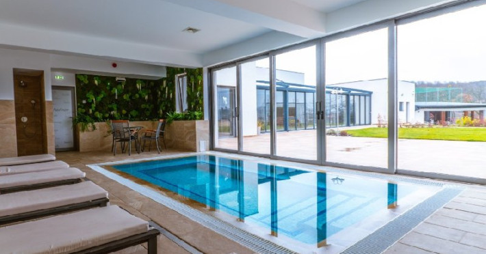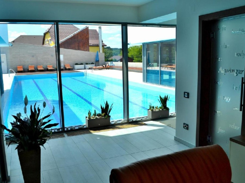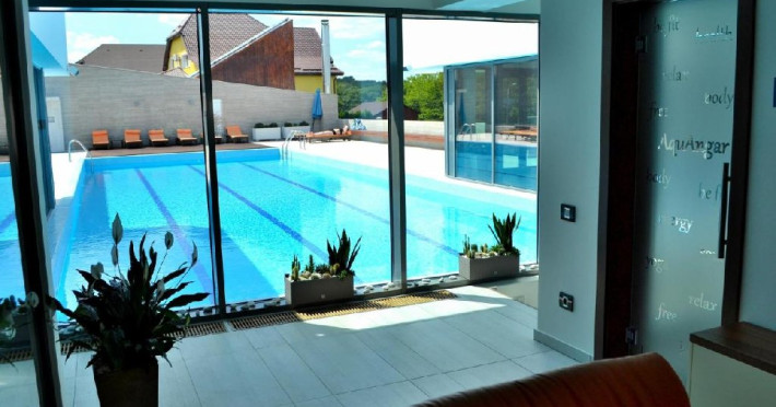 INFORMATII GENERALE:Pensiunea AquAngar te conduce in eleganta celor 4 margarete. O cazare in natura, departe de agitatia cotidiana iti va armoniza mintea, corpul si sufletul. Poti alege intre 6 camere king size cu pat matrimonial, 6 camere twin size sau un apartament cu 2 camere, bucatarie, balcon, spatiu recreativ si vedere spre piscina. Camerele te asteapta in confort maxim, fiecare dispunand de baie proprie, halate si prosoape pentru spa, uscator depar si lotiuni pentru ingrijirea personala. La cerere, exista posibilitatea amplasarii unui pat suplimentar in orice tip de camera.
