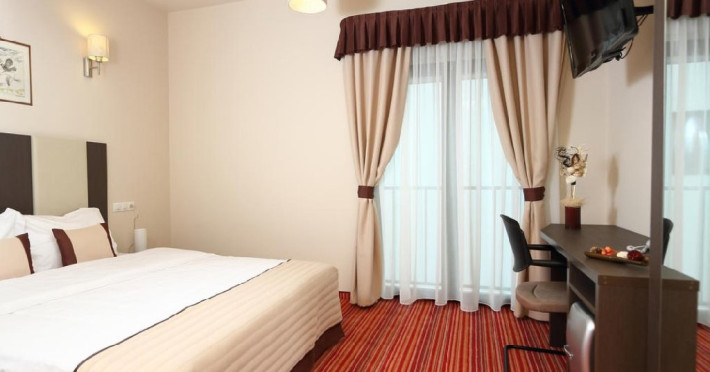 De asemenea, camerele includ cutie de valori, birou, telefon si baie cu dus, uscator de par, halat de baie si articole de toaleta gratuite.