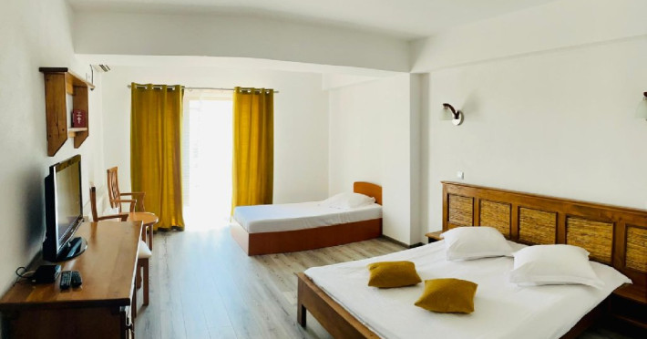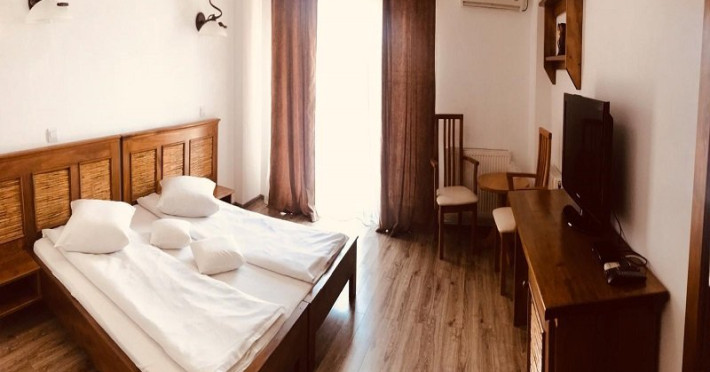Toate camerele sunt dotate cu aer conditionat, frigider, TV, internet, baie, uscator de par.