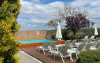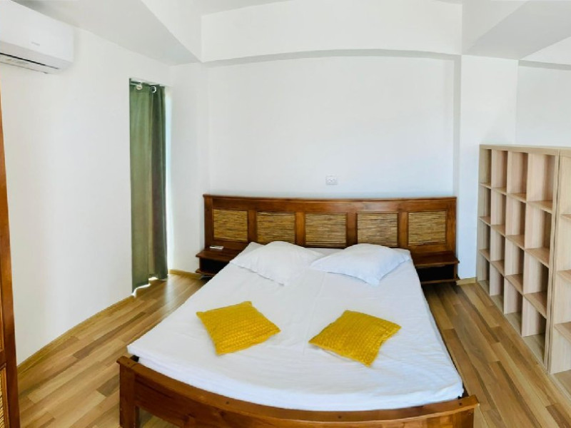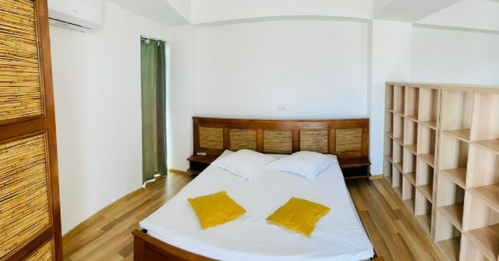 Apartament: dormitor cu pat matrimonial, living cu canapea extensibila, frigider, baie, tv, aer conditionat, wireless, terasa.