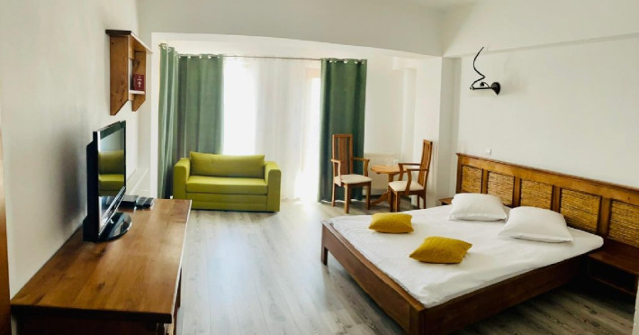 Camera Family: pat matrimonial si canapea extensibila frigider in camera, baie, tv, aer conditionat, wireless,