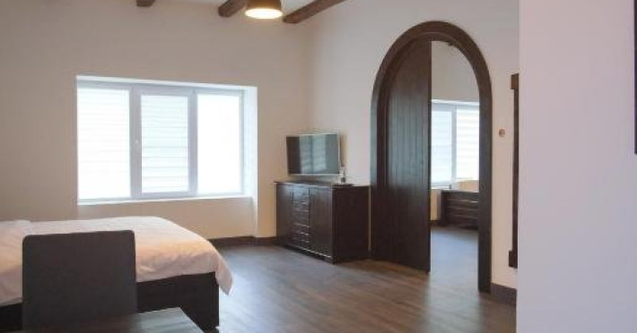 Pe lang acestea, in functie de nevoile clientului, v punem la dispozitie o vil compusa din 4 camere, balcon, 2 bi, living cu buctrie complet utilat si o teras privat.