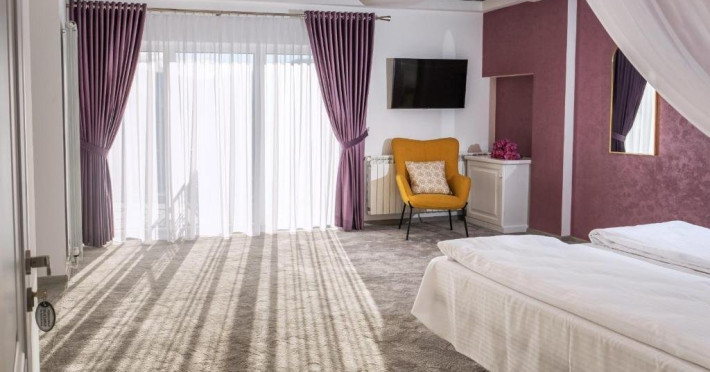 camere generoase, decorate cu elemente armonioase, cu vedere spre Statiunea Gura Humorului, pduri si Partia Soimul;