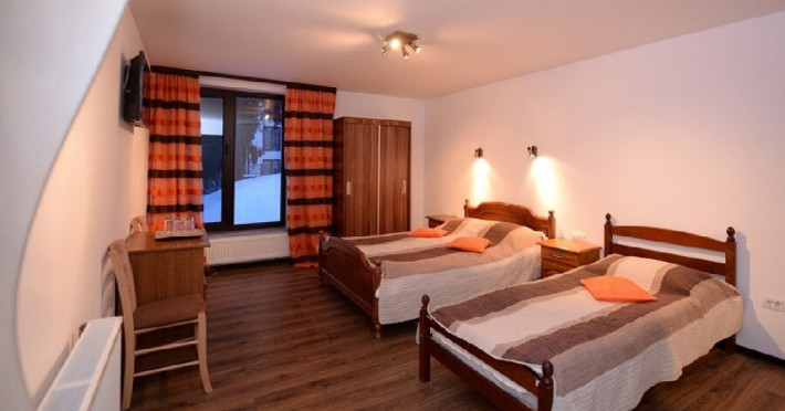 Pensiunea Carina se afla la 300 de metri de telescaunul din Vatra Dornei.Pensiunea dispune de 2 camere duble, 2 camere triple, fiecare cu baie proprie si un apartament care este alcatuit din 2 dormitoare si living, avand 14 locuri in total.