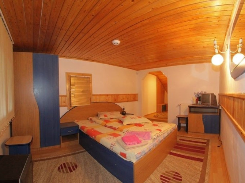 Pensiunea are in dotare o buctrie complet echipat si utilat si are 50 de locuri la mese in living.