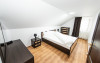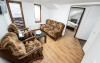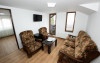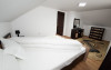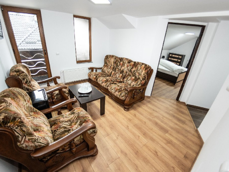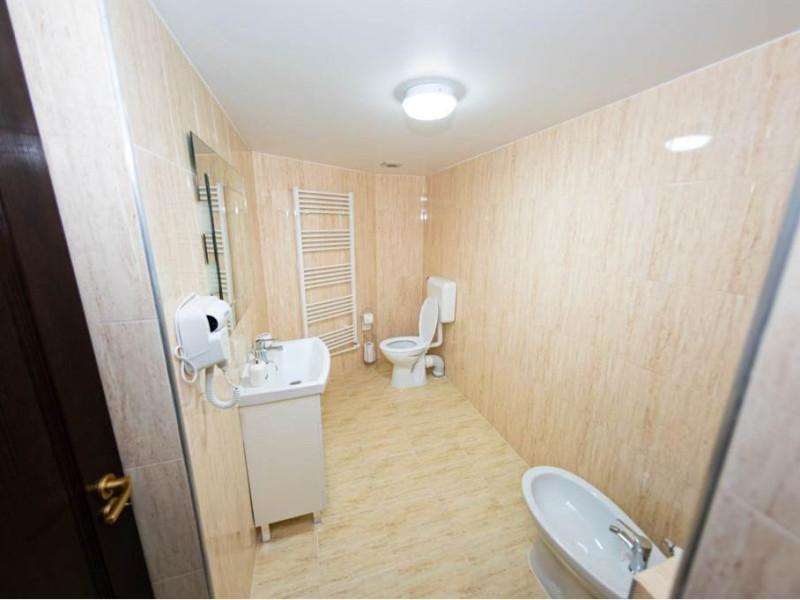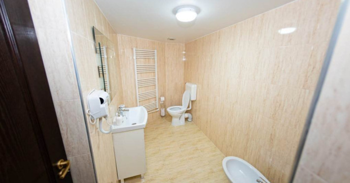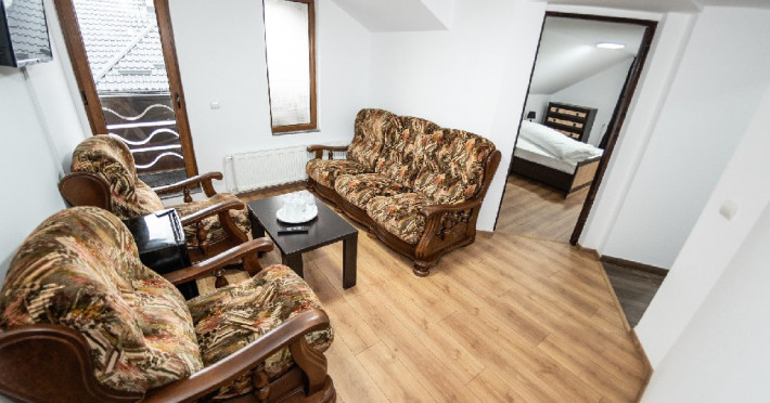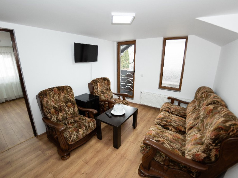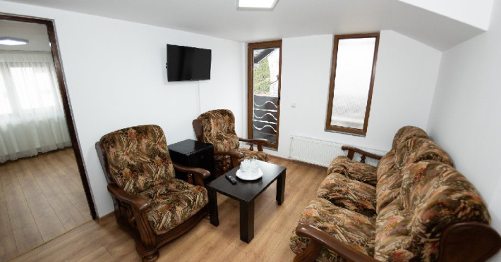 Suita de familie cu 3 camere duble cu pat matrimonial dispune de un living cu TV, o baie spatioasa cu dus si bideu, ideala pentru o familie numeroasa sau pentru trei cupluri cu o relatie de prietenie. Spatiul de cazare dispune doar de o singura baie pentru toate cele 3 camere.