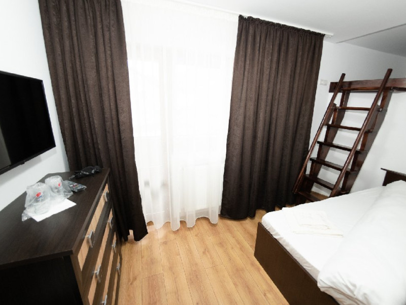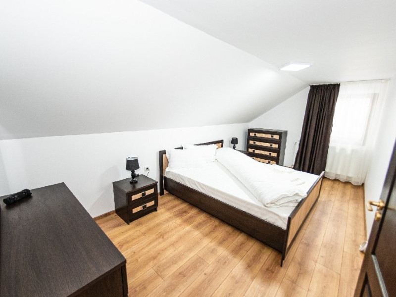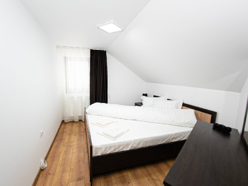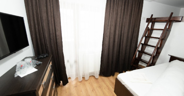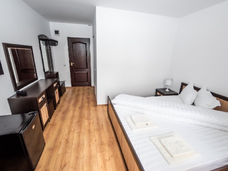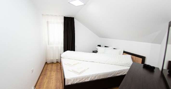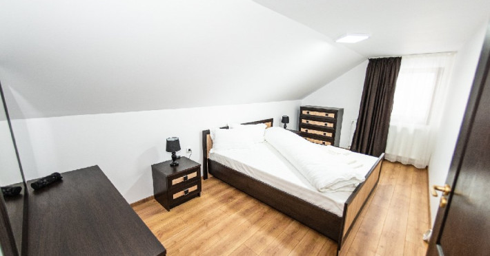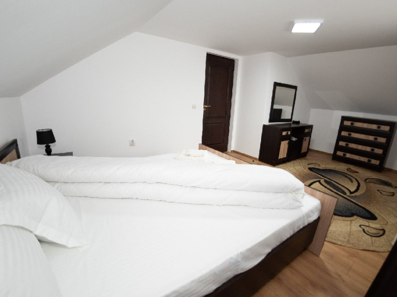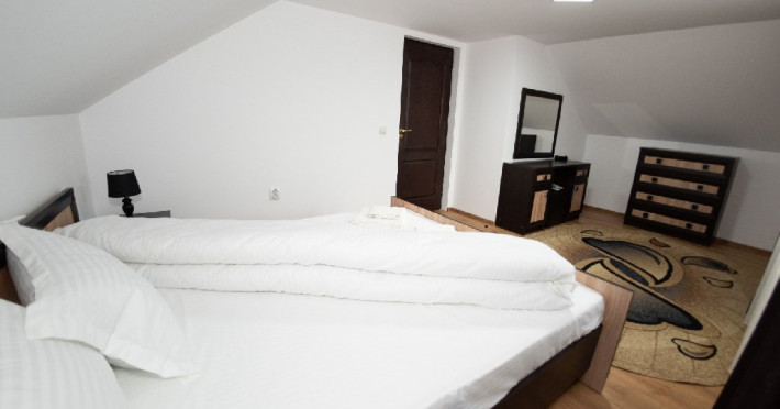 Camere duble cu pat matrimonial king size situate fie la etaj fie la parter, cu birou, wifi gratuit, ofera liniste datorita modului constructiv.