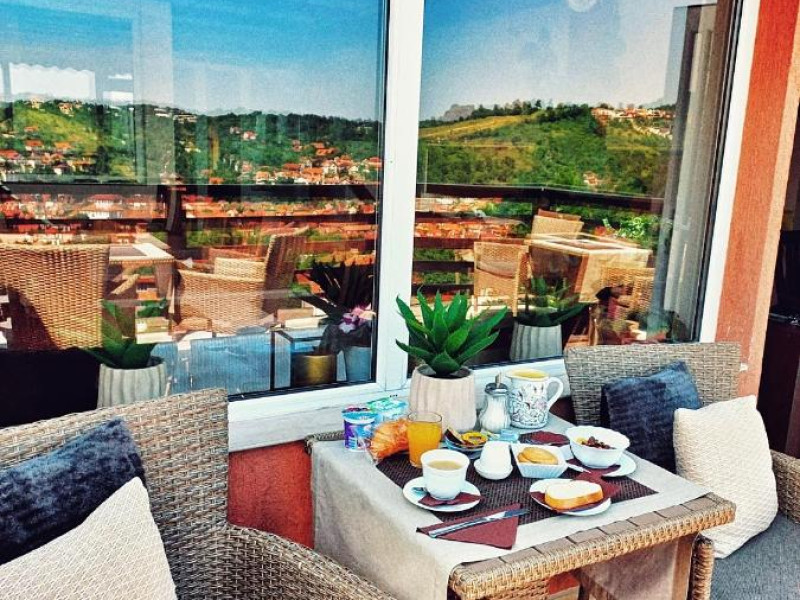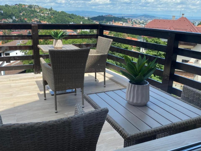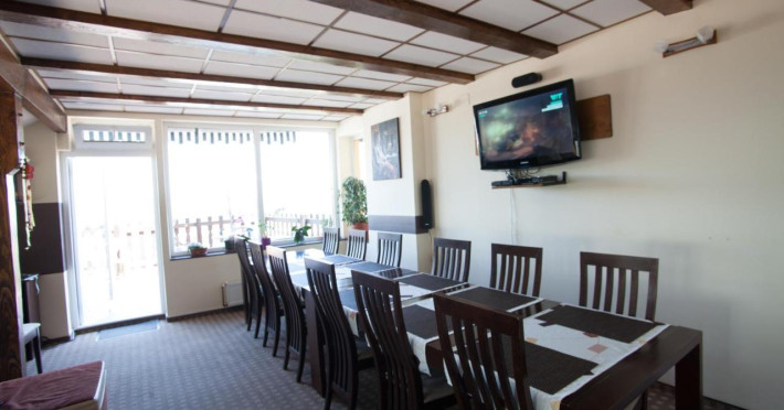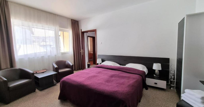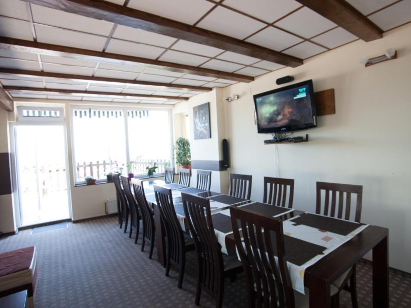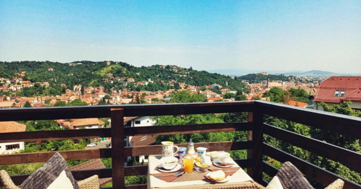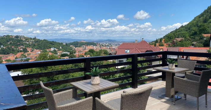 PENSIUNEA CASA CRISTINAâLa poalele Tampeiâ¦. la inaltimeâBucurându-se de o pozitie liniÅtitÄ si la inaltime, ideala pentru cateva zile de relaxare la poalele Muntelui Tâmpa, Pensiunea Casa Cristina oferÄ o priveliÅte panoramica asupra BraÅovului avand 7 camere duble cu baie proprie, o suita cu doua camere cu o baie pentru 4 persoane, ideala pentru familii, livingroom si o terasÄ mare accesibila tuturor oaspetilor. BucÄtÄria este dotata cu fierbator de apa, filtru de cafea, cuptor cu microunde, plita electrica, frigider, vesela si tacamuri. Acces gratuit la internet de mare viteza Wi-Fi. Centrul istoric al BraÅovului cu principalele puncte de interes, fortificatii, muzee, restaurante Åi magazine, este la 15-20 minute de mers pe jos, Piata Unirii, Catedrala Sf. Nicolae si prima scoala romaneasca este la 10 minute de mers pe jos. Gara BraÅov este la 5 km, iar staÅ£iunea de schi Poiana BraÅov se aflÄ la14 km, 25 de minute de mers cu maÅina, Plecand de la Casa Cristina puteti vizita Cetarea Rasnov, Castelul Bran, Castelul Peles, Transfagarasan, Sighisoara, Lacul Sfanta Ana, Bisericile Fortificate din Harman si Prejmer, Rezervatia de zimbrii din Vama Buzaului. De asemenea puteti porni in drumetii in Muntii Postavarul, Piatra Craiului, Bucegi, Baiului, Piatra Mare, Ciucas.Datorita dinamicitatii domeniului disponibilitatea ofertelor se modifica de la un moment la altul. De aceea ofertele sunt valabile in limita locurilor disponibile. Agentia nu este responsabila pentru eventualele neconcordante care pot aparea intre informatiile privind tarifele si alte detalii din site si informatiile primite in agentie. In aceste cazuri vor avea prioritate, intotdeauna, informatiile primite in agentie.