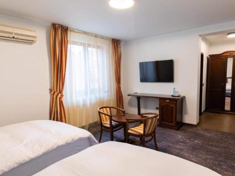Bucurandu-se de o locatie centrala in Targu Jiu, la 50 de metri de Teatrul de Vara, pensiunea Casa Vera pune la dispozitie un restaurant cu specific romanesc, terasa in aer liber si acces Wi-Fi gratuit in intreaga proprietate. Camerele sunt echipate cu TV cu ecran plat cu canale prin cablu, minibar si baie privata cu dus, articole de toaleta gratuite si uscator de par. De asemenea, unele camere au balcon, iar halate de baie sunt disponibile la cerere. Oaspetii pot parca gratuit intr-o locatie din apropiere. Cea mai apropiata statie de autobuz este la 200 de metri, iar Gara Targu Jiu se afla la 1 km.Datorita dinamicitatii domeniului disponibilitatea ofertelor se modifica de la un moment la altul. De aceea ofertele sunt valabile in limita locurilor disponibile. Agentia nu este responsabila pentru eventualele neconcordante care pot aparea intre informatiile privind tarifele si alte detalii din site si informatiile primite in agentie. In aceste cazuri vor avea prioritate, intotdeauna, informatiile primite in agentie.