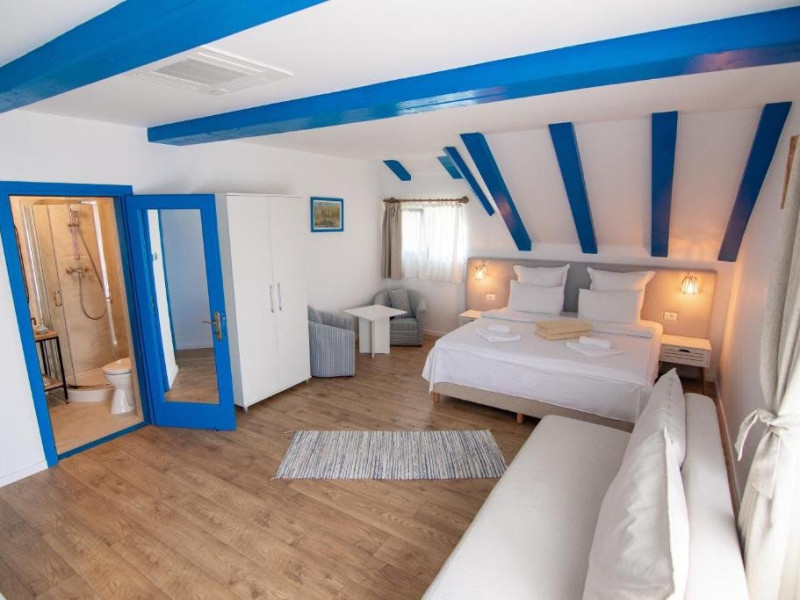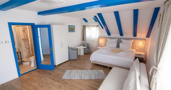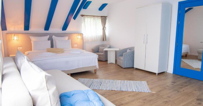 Suita de familie este formata din doua incaperi cu pat matrimonial si doua paturi single.