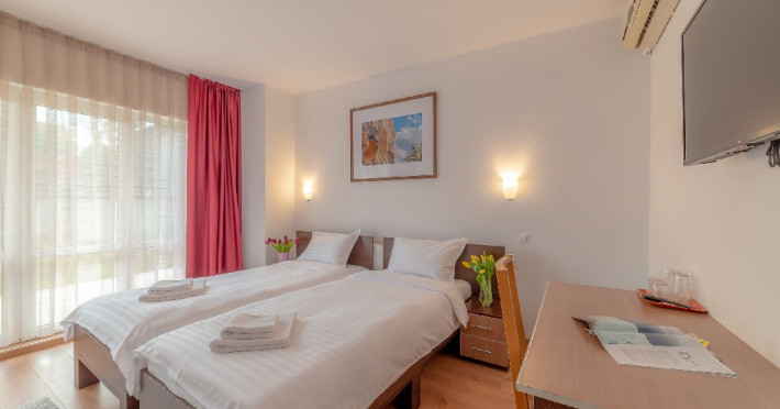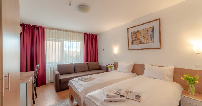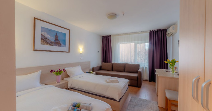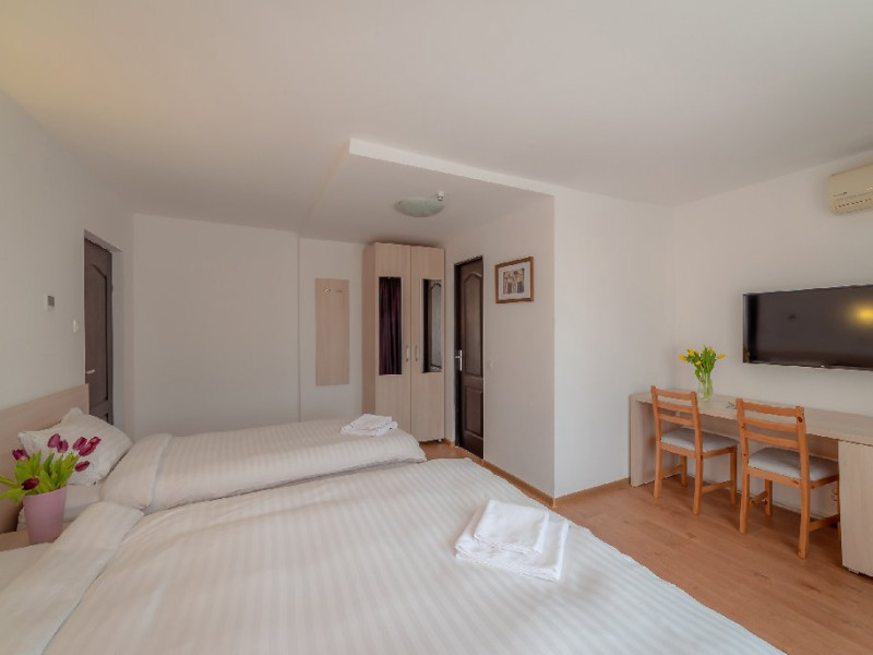- camere de familie cu un pat matrimonial/ 2 paturi single + canapea dubla extensibila.