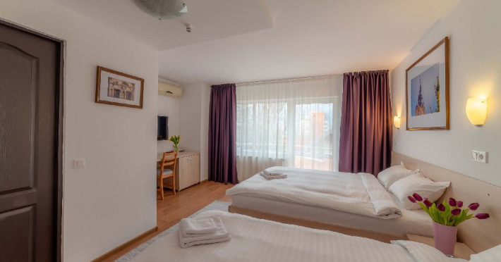 Pensiunea CLUJ, are 15 camere (9 matrimoniale, 1 single, 1 tripla si 4 camere de familie), clasificate 3 stele, situata aproape de centrul orasului, ofera facilitati moderne si servicii de calitate. La cerere poate oferi si mic dejun. Camerele sunt dotate cu baie proprie, sistem automat de incalzire/aer conditionat, TV cu ecran plat, minifrigider, internet de mare viteza. Aproape de Gradina Botanica, Parcul Central, Piata Unirii. Pensiunea are 15 locuri de parcare iar conexiunea wireless asigura contactul permanent cu informatiile de actualitate.Datorita dinamicitatii domeniului disponibilitatea ofertelor se modifica de la un moment la altul. De aceea ofertele sunt valabile in limita locurilor disponibile. Agentia nu este responsabila pentru eventualele neconcordante care pot aparea intre informatiile privind tarifele si alte detalii din site si informatiile primite in agentie. In aceste cazuri vor avea prioritate, intotdeauna, informatiile primite in agentie.