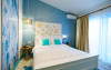 Camerele sunt dotate cu climatizare, balcon cu priza si lumina, plasa de tantari, tv, draperii black-out, binoclu, minibar, aer conditionat, uscator de par, produse de igiena, halite si papuci de casa.
