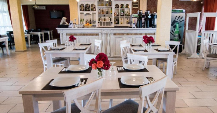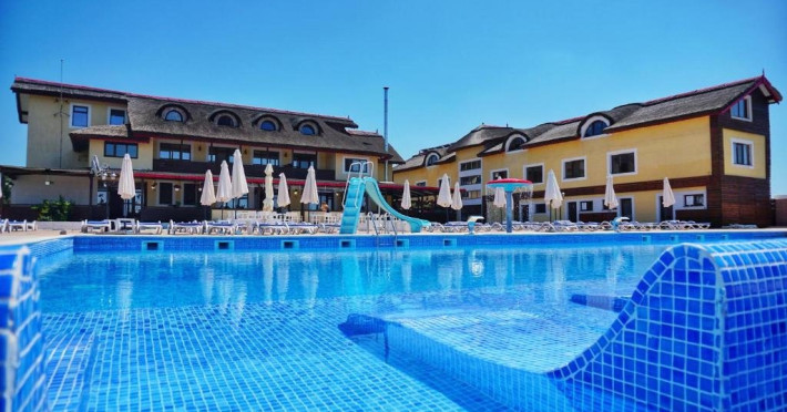 Facilitati: Restaurant, bar, foisor cu zona de barbeque cu gratar, rotisor, sala de conferinte cu o capacitate de 75 locuri, salon de relaxare si divertisment, dotat cu masa de tenis, masa de biliard, masa de poker, echipamente de darts si alte jocuri precum cari de joc, table, sah, piscina semiolimpica, loc de joaca.