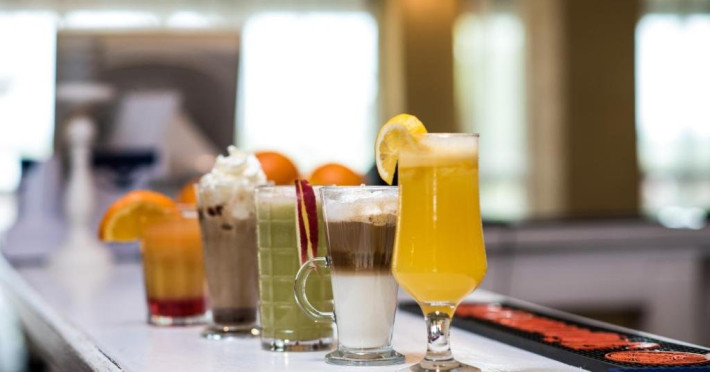 Mesele se servesc in restaurantul propriu care are o capacitate de 75 de locuri in interior, in timp ce terasele exterioare au 150 de locuri.