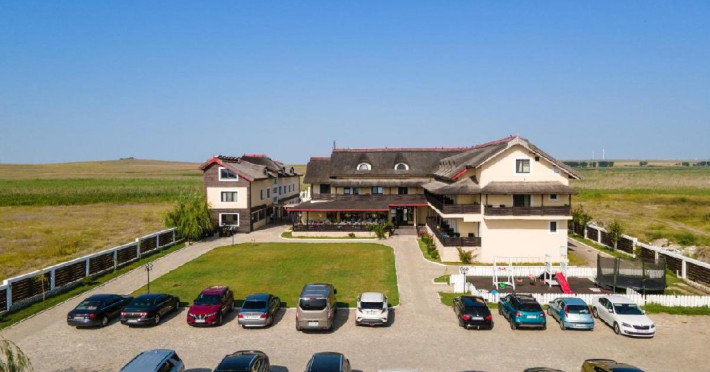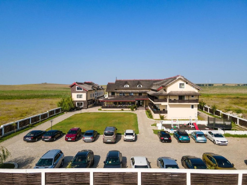 La parterul pensiunii, langa restaurant si terasa dinspre zona de agrement este amenajat un spatiu de joaca pentru copii cu o terasa acoperita.