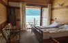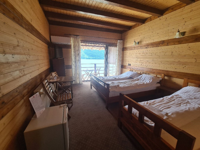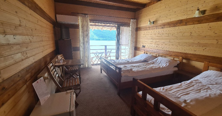Locatia este o oaza de liniste, cu o atmosfera rustica autentica, camere decorate cu lemn, unele cu vedere la Dunare.