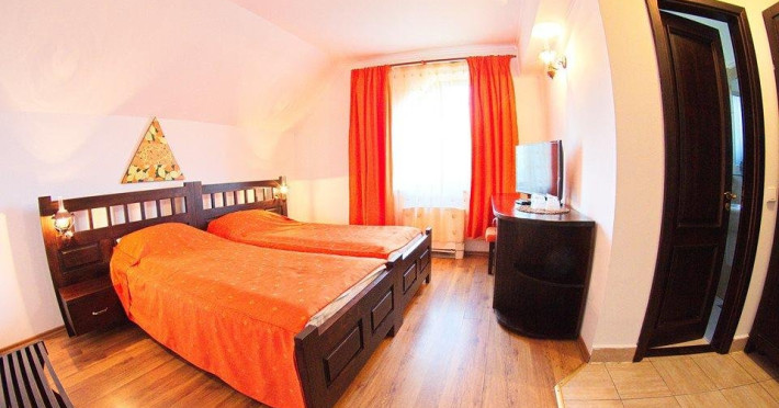 Pensiunea dispune de 10 camere si 2 apartamente cu 24 locuri de cazare. Fiecarea camer este dotat cu aer conditionat, baie cu cabin de dussiusctor de pr, televizor, cablu TV, telefon, frigider.
