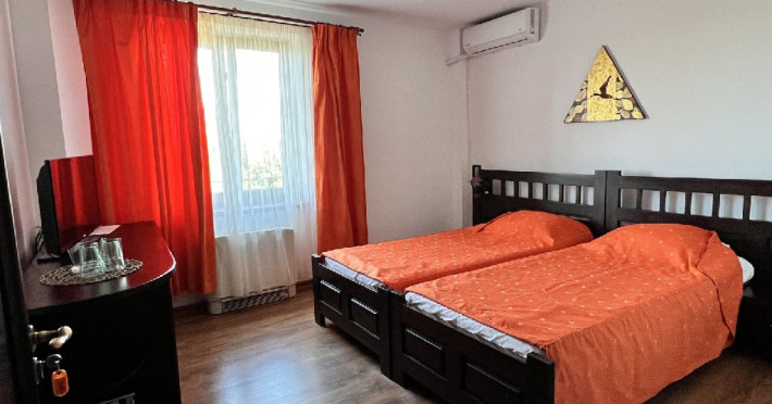 Pensiunea pune la dispozitia turistilor camere duble twin si apartamente. Fiecare camera este dotata cu aer conditionat, baie cu cabina de dus si uscator de par, televizor, cablu TV, frigider.