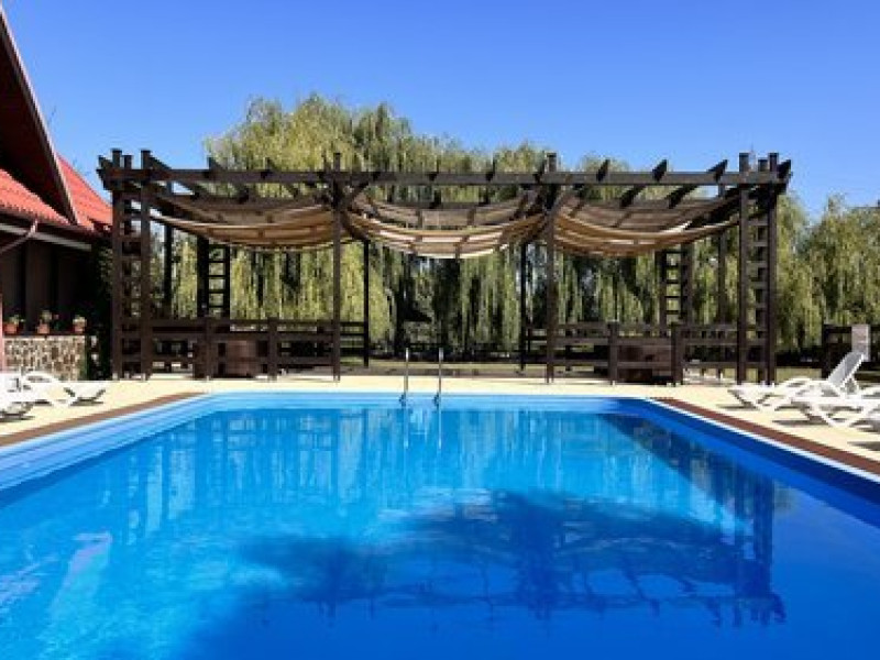 Spatiul oferit este extins iar facilitatile sunt moderne - curte generoasa, piscina exterioara, sezlonguri, umbrele, bar cu terasa.